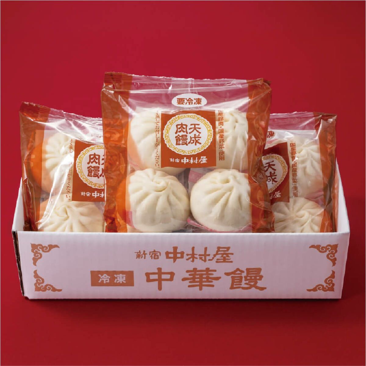 当社中華饅の中でも選び抜かれた素材を使用している天成饅を楽しめるセットです。天成肉饅を食べ切りサイズに仕立てました。天成肉饅(てんせいにくまん)山形県庄内地方の豚肉やどんこ椎茸をはじめ、長ねぎ、たけのこ、しょうがなど、国産の野菜を使用。それぞれの食感を活かしながら、旨み成分が高く、コクのある超特選丸大豆醤油と藻塩で味よく仕立てた具材を、当社独自のほどよい弾力があり、風味のよい生地で包んだ肉饅です。【新宿中村屋の中華まんじゅう】中村屋の創業者、相馬愛蔵が大正14年中国旅行の折、包子(パオズ)を知りました。帰国後昭和2年に、それを日本人好みの味付けに仕上げ、発売しました。それまでごく一部の中華料理店でしか食べることのできなかった中華まんじゅうは、それ以降一般の人々にも親しまれるようになりました。それから現在に至るまで、常にお客様の嗜好の変化に対応した品質改良を行い、発売以来90余年間愛され続ける中村屋の代表商品となっております。