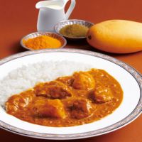 香ばしくグリルしたチキンを入れ、じっくり炒めた玉ねぎをベースにアルフォンソマンゴーやクリームを加え、香り高いスパイスで仕上げた、上質な甘みとほど良いスパイス感が特徴の“大人の甘口”カリーです。《辛さレベル:2》