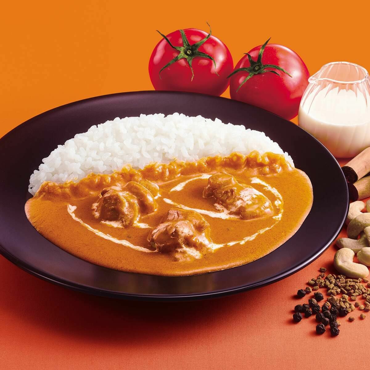 バターと北海道産生クリームの濃厚なコクが広がるバターチキンカリーです。本場インドの製法にならい、ヨーグルトとスパイスに漬け込み焼き上げたタンドリーチキンを加え、より本格的に仕上げました。