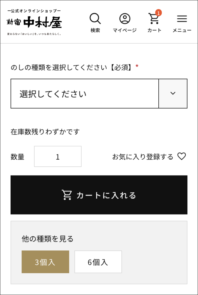 ※一部商品につきましては、掛紙・包装は承りかねます。 - 「カートに入れる」ボタンをクリックすると、ショッピングカートに商品が追加されます。