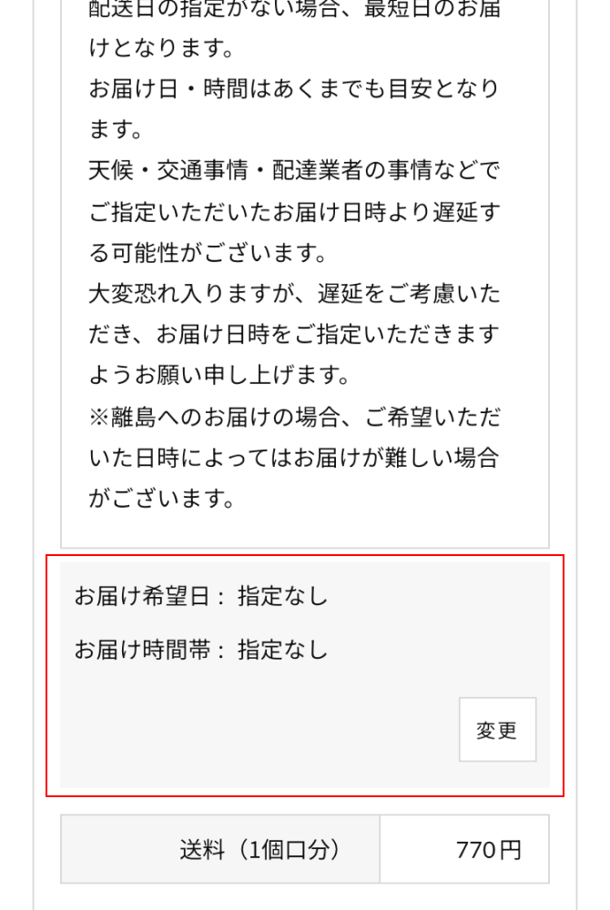 - 「ギフトボックス」や「のし」について、選択ください。