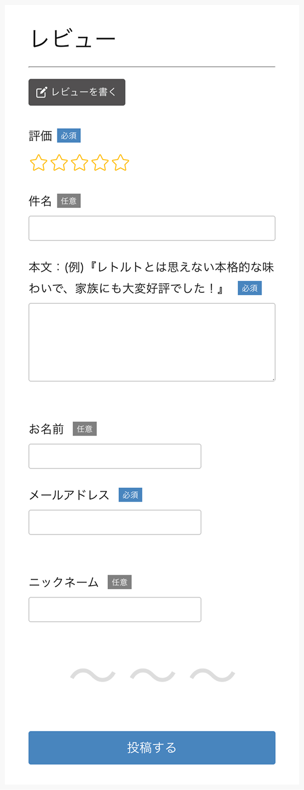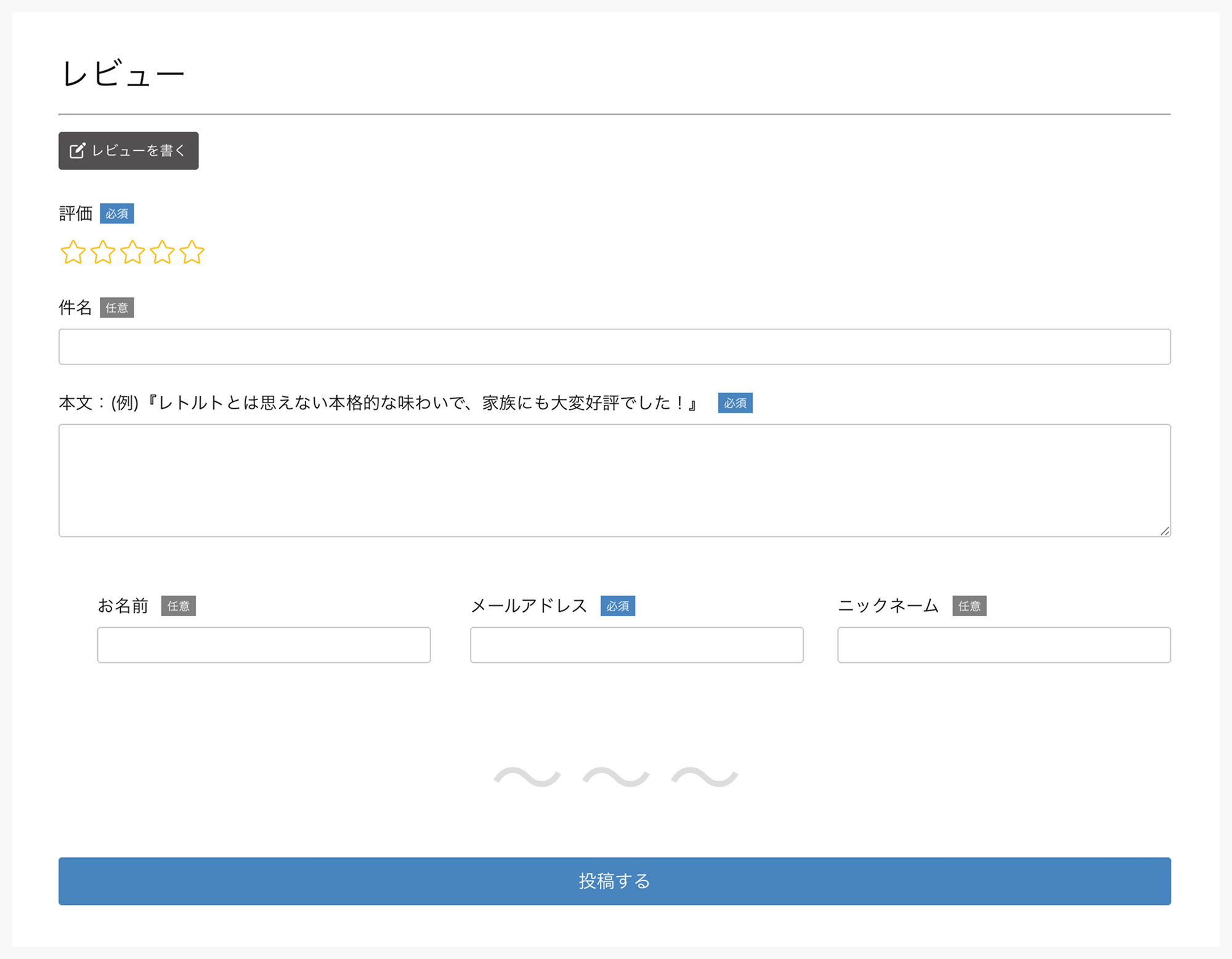 下記「レビューの投稿方法」をご参考の上、レビューを投稿してください。